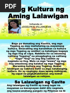 Ang mga tao rito ay kabilang sa mgapangkat etniko ng Caviteno Mayaman din sa kultura an gating pangkat etniko. Mga Pangkat-Etniko sa Asya Ang malawak na lupain ng Asya ay pinaninirahan at katatagpuan ng ibat ibang pangkat-etniko. Gawain sa Pagkatuto Bilang 2 Basahin ang pardon ng sanaysay at buuin ang tsart batay sa binasang sanaysay tungkol salinulukoy na pangkat etnikoAng Cavite ay nasa Rehiyong Timog Katagalugan.